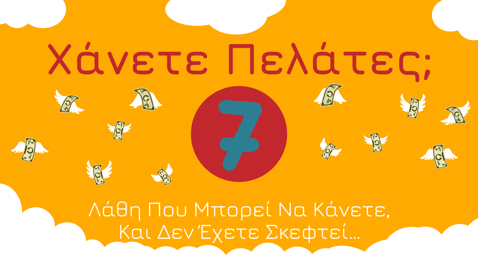 Η SocialMe.gr σας παρουσιάζει 7 λόγους, για τους οποίους μπορεί, εν αγνοία σας, να χάνετε πελάτες στον ανταγωνισμό σας, και να παρατηρείτε σημαντική μείωση των πωλήσεών σας.