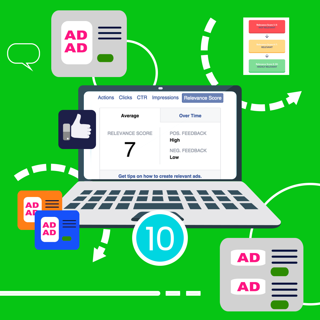 Υπάρχουν πολλές μεταβλητές στον αλγόριθμό του Facebook για την απόδοση της διαφήμισης σου, ωστόσο μια είναι αυτή που μπορείς εύκολα να παρατηρήσεις. Πρόκειται για το “Relevance Score” το οποίο επεξηγεί το πόσο σχετική είναι η διαφήμιση σου με το κοινό που έχεις στοχεύσει. Αυτό το metric μπορεί να πάρει τιμές από 1 – 10, όπου ψηλότερος βαθμός σημαίνει και καλύτερα αποτελέσματα. Το Relevance Score καθορίζεται από το ενδιαφέρον του κοινό που απευθύνεσαι προς τη διαφήμιση και την αλληλεπίδραση τους.